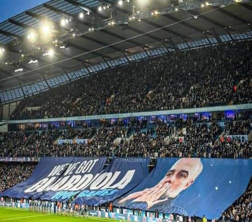 庆祝瓜帅执教生涯1000场里程碑,赛前阿提哈德展示特别TIFO