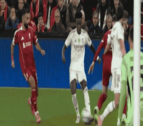 第61分钟,贝林厄姆身后放倒赫拉芬贝赫,利物浦获得位置不错的任意球,索博斯洛伊将球开出,麦卡利斯特抢点头球,这一次,库尔图瓦无能为力了。