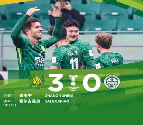 最终,在2025-26亚冠二级联赛小组赛第4轮中,北京国安主场3-0战胜大埔。