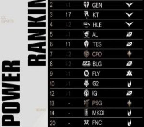 LOL战队全球实力榜更新:LCK包揽前四!AL第五,BLG排名不如CFO! 陷入疯狂 2025-11-09 11:00:44 电竞体育11月9报道 近日拳头发布最新LOL战队全球实力榜,前四皆被LCK赛区队伍占据,目前T1超越Gen.G位列头名,KT上升7名排在第三,AL位列第五,TES位列第六,BLG位列第八! 上一篇: 拒绝再次翻盘!狼队吸取教训终结比赛!狼队11AG 下一篇: 100%遗迹胜率!小龙发力kyxsan开杀猎鹰暴打MOUZ赢图一