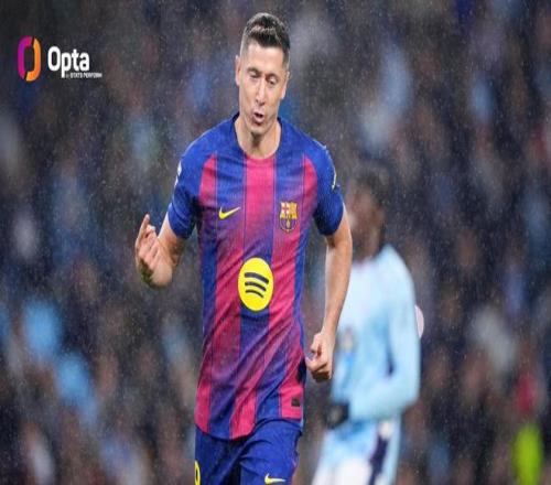 莱万西甲生涯进74球,同期单一联赛进球数仅次于哈兰德和凯恩