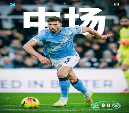 上半场比赛结束,曼城暂时在客场0-0战平纽卡斯尔联。