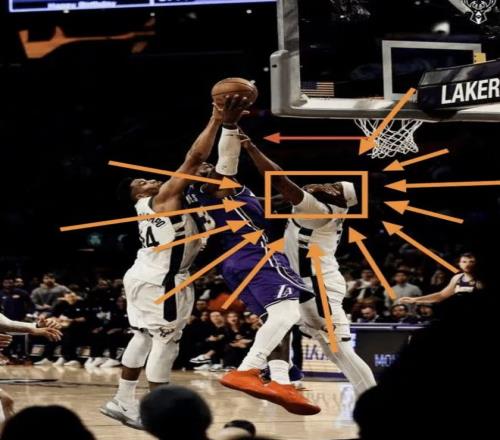 雄鹿官方晒的是一个整体图,特纳过来封盖他,但实际上詹姆斯的左手给特纳脸来了一肘子,结果詹皇只截了上半部分打手的动作,故意把自己肘击特纳的那一部分给截掉了…