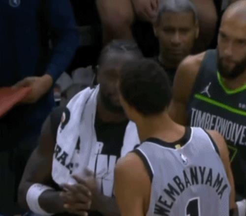 还有一个回合,文班被兰德尔逼到了边线,最终直接倒在场外,裁判没有吹犯规而是吹了马刺出界。